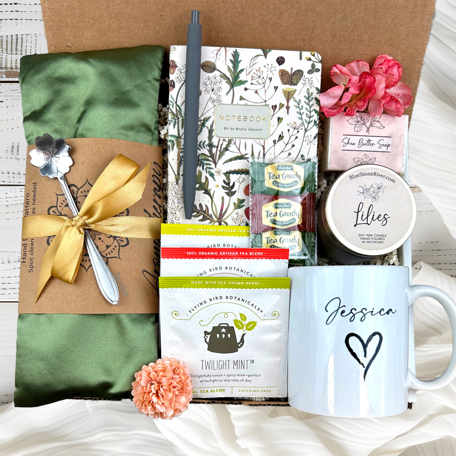 We personally make every order. We will build your gift with care, from personalizing the mug, engraving the spoon and even handpouring the candles. All the designs are made with attention to detail to ensure you have the best customer experience. Plus we are a small business and love to be on a first name basis with our customers. We are here for you.